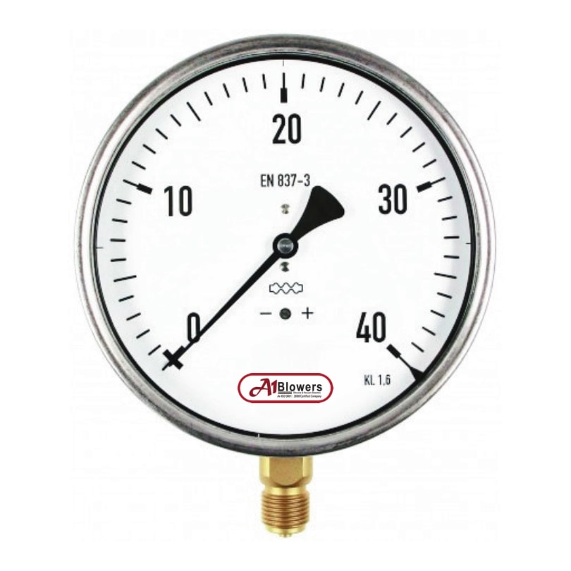 The A1 Pressure Gauge for air blowers is designed to provide accurate and reliable pressure readings for blower systems. Built with high-quality materials, this gauge ensures long-lasting performance and durability. It helps monitor the pressure levels within the blower, allowing for early detection of potential issues like pressure fluctuations or malfunctions. The A1 Pressure Gauge is easy to install and compatible with a wide range of air blower models. Its precise readings help maintain optimal operation and prevent damage to the blower system.